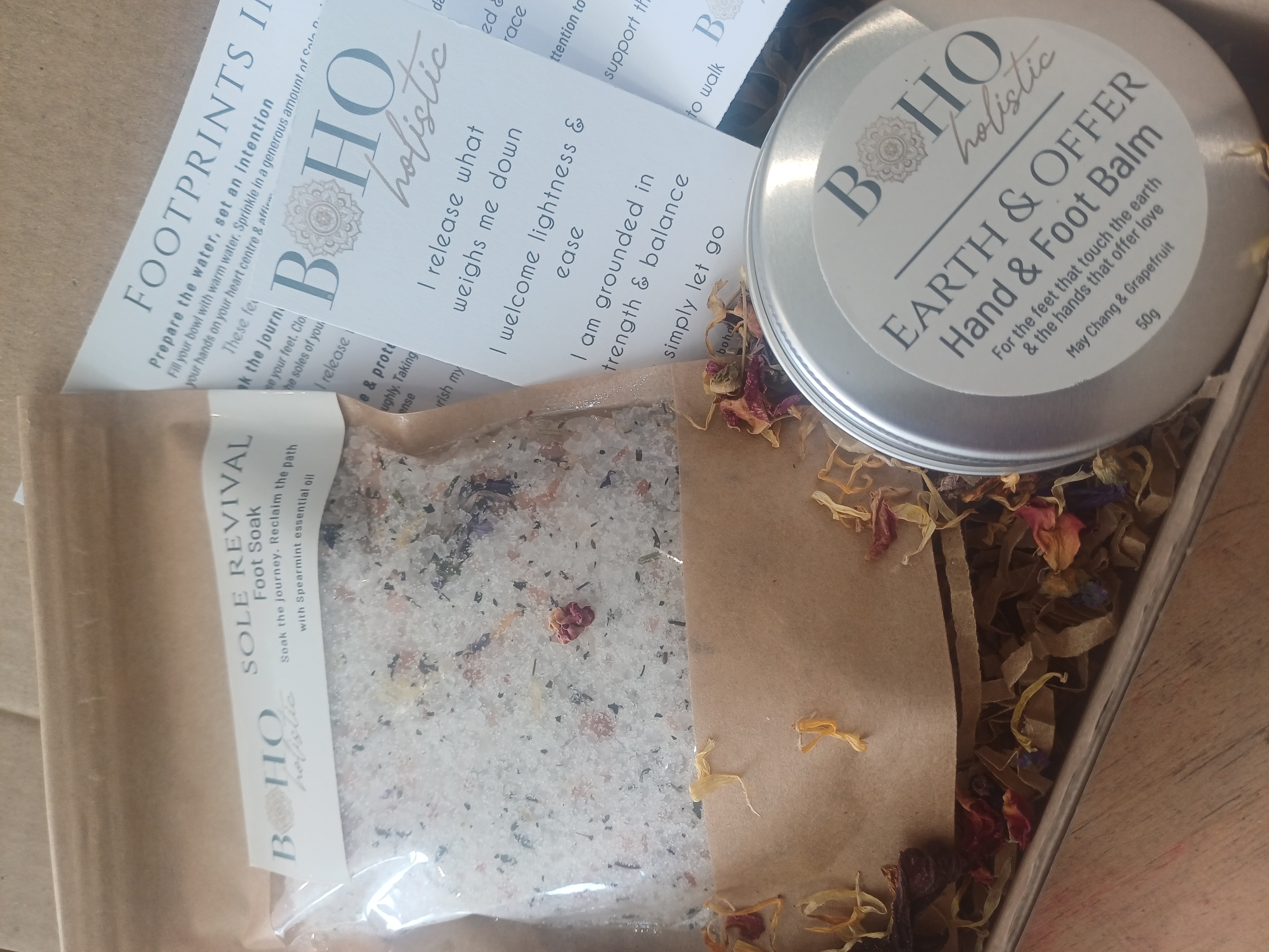 This kit contains a 1000g bag of Sole Revival Foot Soak and 100g of our Earth & Offer Hand Balm.
